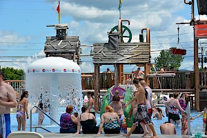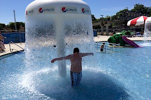 Only appropriate swimwear is permitted on the attractions. Revealing bathing suits, shorts w/ rivets, snaps, zippers, metal ornamentation, cutoffs and jeans are not permitted.