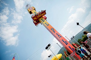 The Free Fall is a tower in which guests are taken to the top and dropped from different intervals. This gives riders a feeling of weightlessness each time the ride drops.
