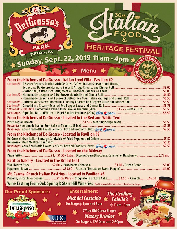 The Italian Food and Heritage Festival runs from 11am-4pm on Sunday, September 22nd. DelGrosso Foods, Inc. and University Orthopedics Center sponsor this annual day of Italian food and music.