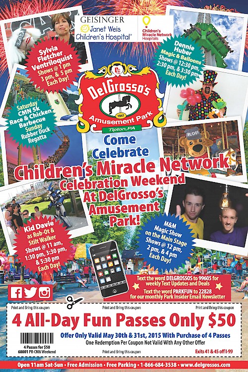 Tipton, Pennsylvania – DelGrosso’s Amusement Park will be home to a two-day celebration benefitting the Children’s Miracle Network and the Geisinger Janet Weis Children’s Hospital.