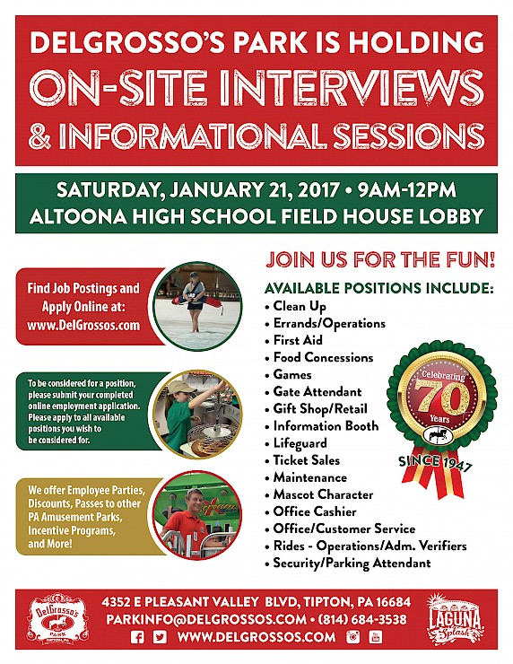 Tipton, Pennsylvania – The Management Team at DelGrosso’s Park is now accepting applications for Seasonal Employment for the 2017 Summer Season.