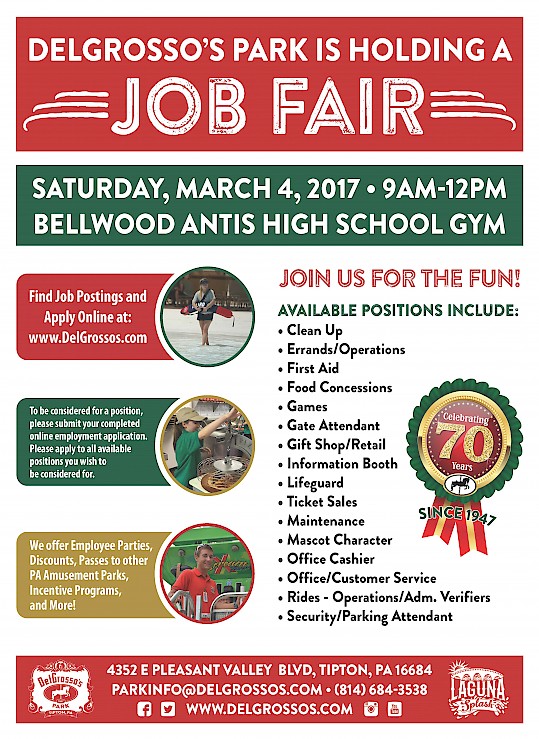 Tipton, Pennsylvania – The Management Team at DelGrosso’s Park is now accepting applications for Seasonal Employment for the 2017 Summer Season.