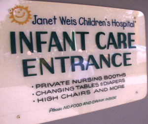 Geisinger's Janet Weis Children's Hospital - Infant Care Center provides diaper changing facilities and a private area for nursing mothers, in air-conditioned comfort, and also offers baby supplies at a nominal cost.